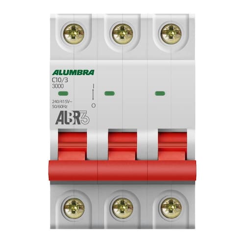 Disjuntor Tripolar 3P 10A Curva C ALBR3 Alumbra Disjuntor Tripolar 3P Curva C 10A 3kA ALBR3 Alumbra