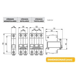 - Marca: Soprano; - Referência: 05121.0016.31; - Modelo: Disjuntor SHB3 GII; - Fabricado em termoplástico de engenharia; - Tensão nominal: 127/220V; - Frequência: 50/60 Hz; - Vida mecânica: 10.000 manobras | elétrica: 4.000 manobras; - Número de polos: 3; - Tensão máxima de isolamento de 415(Vca); - Temperatura ambiente de 30C; - Curva de disparo: C; - Capacidade de interrupção: 3 kA; - Padrão de instalação: DIN; - Grau de proteção IP20; - Peso do Produto: 0,09000kg; - Normas técnicas: Certificação Inmetro ABNT NBR 60898-1 (até 63A); - 2 anos de garantia.