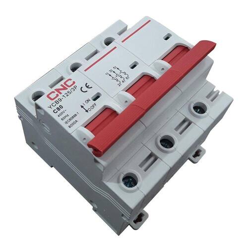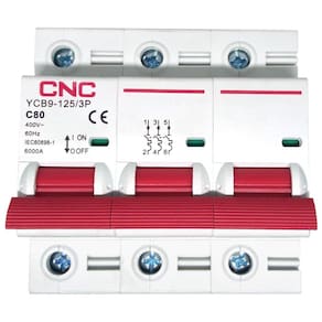 O Disjuntor Tripolar Modelo Ycb9-125 Curva C 80A 6Ka Cnc é ideal para sistemas que passam um grande fluxo de corrente. Com ele, você pode ligar e desligar todas as três fases de um circuito de maneira prática e segura.