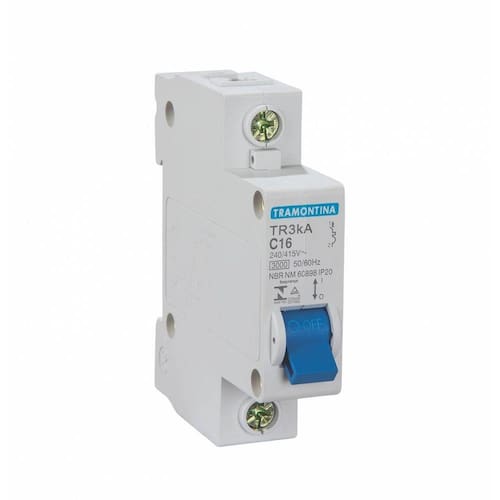 Marca: Tramontina Linha: TR3KA Tipo: Unipolar Amperagem: 16A IP20: Sim Curva: C Altura: 8cm Largura: 7cm Diâmetro: 1 cm Garantia: Contra defeito de fabricação. Orientações Gerais: A instalação e segurança: É importante que o produto seja instalado por profissional habilitado. Antes de instalar, desligue a energia elétrica.