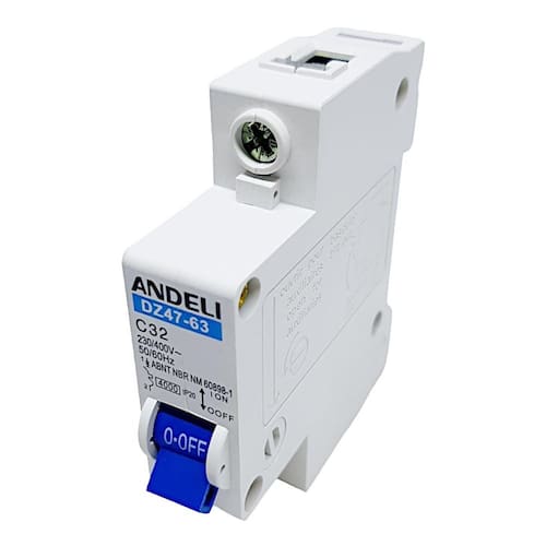 Disjuntor unipolar 32a - andeli dz47-63 Descrição geral: O disjuntor unipolar 32a é projetado para suportar correntes elétricas de até 32 amperes, tornando-o ideal para aplicações que demandam proteção eficaz em circuitos de baixa corrente. Especificações: - dimensões: 77 x 17 x 65 mm - peso: 0,085 kg - polos: 1 Aplicações: - em sistemas elétricos Funções: - protege os sistemas elétricos de corrente perigosas para o mesmo Conteúdo do pacote: - 01 disjuntor unipolar Todas as dúvidas podem ser auxiliadas pós-venda. Temos técnico disponível para auxiliar e ajudar com dúvidas técnicas ou de instalações. As imagens do anúncio são meramente ilustrativas. Podendo haver variações de cor e tamanho do produto anunciado, a depender da disponibilidade em . Marca: Não Informado