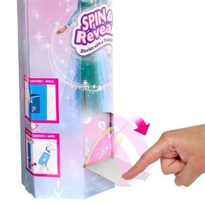 A Disney Frozen Spin and Reveal traz toda a magia do universo da Elsa em um emocionante momento de revelação. Ao abrir a aba do castelo, os pequenos se deparam com uma cena temática repleta de diversão, com atividades e contornos para adesivos. Girando a embalagem, são encontradas 5 bolsas misteriosas contendo 5 acessórios especiais e 5 adesivos encantadores. E o grande momento final é a aparição da boneca Elsa em um deslumbrante traje inspirado no filme! As crianças também podem personalizar a cena com adesivos e se divertir com uma atividade de objetos ocultos.