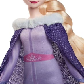 A boneca Elsa veste um magnífico vestido de baile inspirado nas festividades de Arendelle, com muito brilho e elegância. Seu visual inclui uma capa cintilante removível, com detalhes delicados que remetem ao inverno. Feita com materiais de alta qualidade, essa boneca é ideal para crianças e colecionadores que desejam recriar cenas icônicas ou criar novas aventuras no mundo encantado de Frozen.