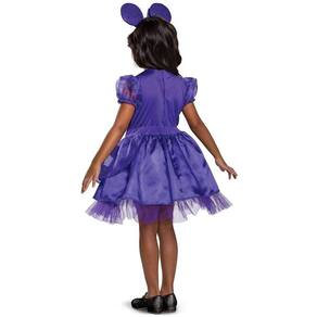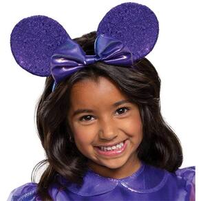 Esta super fofa Minnie Potion Purple Classic é uma rolha de show. Seja truque ou tratamento ou no parque, este é certamente um conjunto divertido para vestir. O vestido apresenta uma gola de cetim iridescente, mangas de bolinhas com estampa de purpurina e peplum. Um laço roxo iridescente fica na cintura com uma participação especial fofa da Minnie Mouse no meio. O forro de babados faz a saia se destacar e cria uma silhueta fofa. Termine com a faixa de cabeça das orelhas de cetim Minnie Mouse e o laço cintilante!