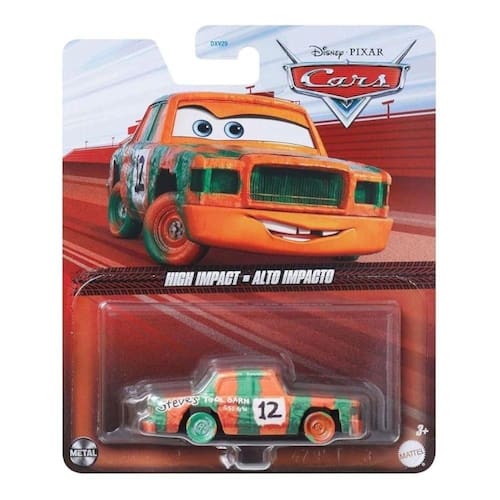 Reviva as corridas eletrizantes de Radiator Springs com o veículo Alto Impacto, criando competições cheias de ação, inventando novas histórias inspiradas nos filmes ou exibindo-o como peça de destaque na coleção; perfeito para brincar sozinho, desafiar amigos nas pistas e mergulhar no universo de Carros da Disney e Pixar.