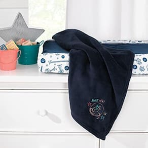Buzz é destaque neste cobertor de bebê aconchegante e macio da Disney! O Toy Story Color Crazy Baby Blanket é detalhado com um aplicativo de Buzz Lightyear, estrelas e "Blast Off"! Este cobertor azul mede 30" x 40" e é o tamanho perfeito para abraçar. Feito de tecidos super macios, esse cobertor para bebê é ótimo para usar no carrinho ou viajar em qualquer lugar! Coordena com a linha completa de roupas de cama e acessórios para berço Toy Story Color Crazy.