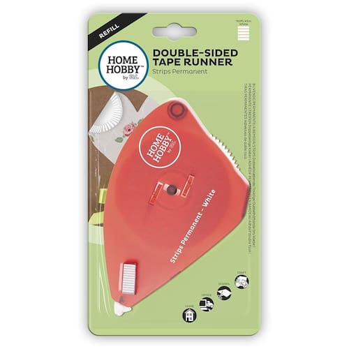 - Dispensador disponível com tiras adesivas brancas duplas e permanentes de 30 m