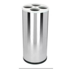Confeccionado em aço inoxidável AISI 430, com fundo em plástico ABS e tampa injetada em plástico polipropileno PP , tubos internos extrusado em poliestireno PSAI sendo 4 quatro tubos para copos de água e 1 um para descarte de palhetas usadas.