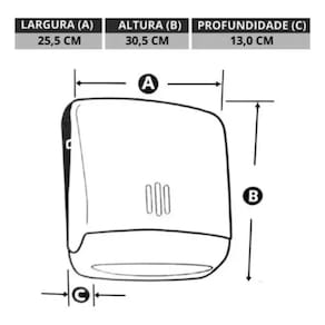 Ficha Técnica - Marca: Jackwal. - Cor: Tampa branca e base azul. - Material: Plásticos de engenharia. - Tipo de sistema: Manual. - Tipo de papel: Interfolhado. - Com trava de segurança: Não. - Quantidade de Folhas: 750 23x20cm (duas dobras). - Altura: 30,5 cm. - Largura: 25,5 cm. - Comprimento: 13,0 cm. - Peso: 0,850 kg.