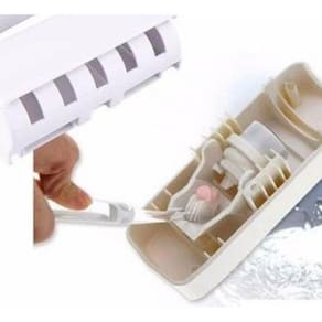 Praticidade, limpeza e organização para o seu banheiro. Evite desperdícios de creme dental. Este dispenser utiliza o vácuo criado na embalagem do creme dental para retirar cada ml, sem esforço algum. Se adapta a qualquer superfície fácilmente. Acompanha lindo suporte que organiza as escovas de dente. Para usar coloque o creme dental e feche a capa do produto. Então insira sua escova de dente e pressione levemente a escova para dentro do dispenser, liberando então a quantidade ideal de creme dental. Dispenser para Pasta de Dente + Suporte para 5 escovas Material: Plástico Evita o contato direto com o creme dental Muito mais higiene e saúde para sua família Basta 1 toque para liberar a quantidade certa de creme dental Não vaza Sistema a vácuo Suporte para até 5 escovas de dentes Dimensões do dispenser: 15 x 7 x 6 cm A x L x C Dimensões do suporte para escovas: 11 x 5 x 4 cm C x A x L Dimensões da embalagem: 19,5 x 13 x 7 cm Peso: 0,2 kg Acompanha fita dupla face para fixar o produto na parede