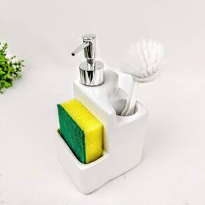Uso: qualquer detalhe em um ambiente, é sinal de bom gosto e elegância, então, que tal usar este dispenser para detergente com lateral para bucha de louça e escovinha, produzido em cerâmica na cor branca Design moderno que ajuda a evitar desperdício do sabão e diminuir a poluição do meio ambiente além de manter sua cozinha sempre organizada