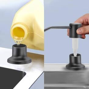O utensílio mais inovador dos últimos tempos para a sua pia/cuba o dispenser dosador de detergente vem com uma base em plástico super-resistente que será embutido em sua cuba/pia afim de deixar apenas o bico de inox à mostra.