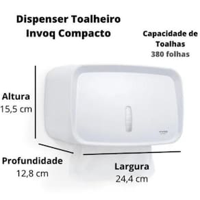 Dispenser de papel interfolha invoq compacto branco Feito com materiais resistentes, duráveis e com acabamento de alto padrão. O toalheiro invoq compacto torna-se peça-chave na composição de um ambiente moderno, clean e requintado.