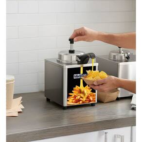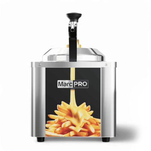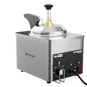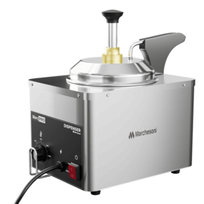 Com capacidade de 2 litros e sistema banho-maria, o Dispenser MarcPro mantém queijos, molhos e caldas sempre quentes e prontos para servir;