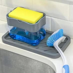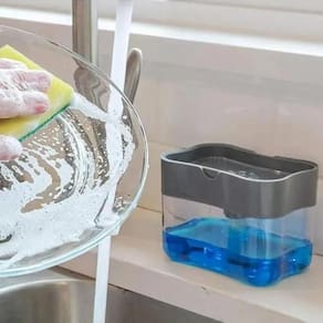 Dispenser Detergente 2 em 1 Esponja Limpeza Cozinha com Dosador O dispenser de detergente 2 em 1 é o que você precisa para facilitar e agilizar a sua rotina de limpeza na cozinha.