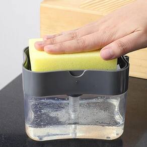 O produto evita o desperdício de detergente, pois possui dosador que funciona por pressão, e mantém a esponja seca para futuras utilizações.
