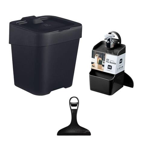Conteúdo do Kit: 1 lixeira 2,5 lt, 1 dispenser detergente e bucha, 1 rodinho de pia