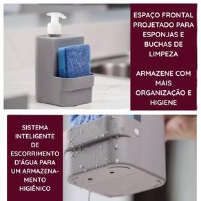 Com capacidade para 500ml de detergente líquido, o dispenser acompanha um suporte acoplado para a esponja, oferecendo tudo o que você precisa ao alcance das mãos. Ideal para otimizar o espaço da bancada, mantendo tudo no lugar certo com muito mais higiene e estilo.