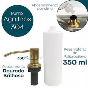 Aliando modernidade e elegância o Dosador Dourado é o produto ideal para compor seu ambiente, adiciona requinte a sua bancada com o seu design polido propiciando uma aparência inovadora e discreta com muita eficácia no seu uso. Sua instalação é fácil, ele é o Dispenser ideal para colocar ao lado da sua pia ou torneira, é preciso apenas preparar a superfície com um furo vazado e embutir seu dosador. Funcional, sua utilização é bem prática, o refil pode ser completo sempre que se esgotar, sem exigir muito trabalho, é necessário apenas retirar a parte superior do aplicador e preenche-lo com sua solução.