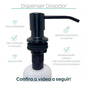 Sua instalação é fácil, ele é o Dispenser ideal para colocar ao lado da sua pia ou torneira, é preciso apenas preparar a superfície com um furo vazado e embutir seu dosador.