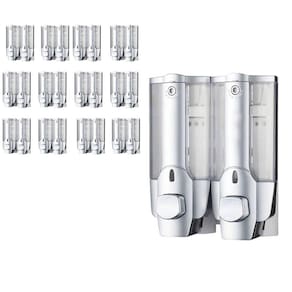 Dispenser Duplo com reservatório para Shampoo, Sabonete ou Álcool Gel possui manuseio pratico e fácil de ser instalado, garante eficiência e evita desperdício na saída do sabonete.