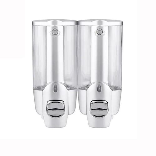 Dispenser Duplo com reservatório para Shampoo, Sabonete ou Álcool Gel possui manuseio pratico e fácil de ser instalado, garante eficiência e evita desperdício na saída do sabonete.