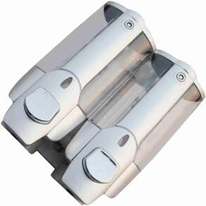 Dispenser Duplo com reservatório para Shampoo, Sabonete ou Álcool possui manuseio pratico e fácil de ser instalado. Garante eficiência e evita desperdício na saída do sabonete.