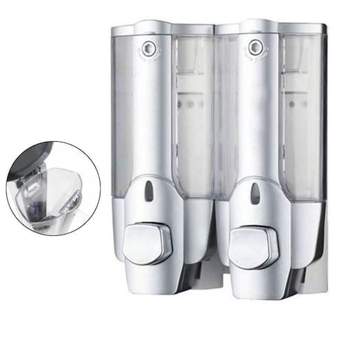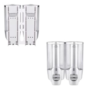 Dispenser Duplo com reservatório para Shampoo, Sabonete ou Álcool Gel possui manuseio pratico e fácil de ser instalado, garante eficiência e evita desperdício na saída do sabonete.