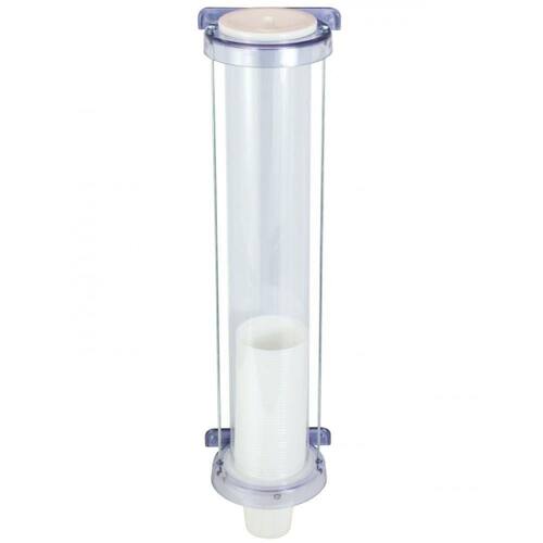 Dispenser de copos para água de 180/200mL. Tubo confeccionado em PVC semirrígido, base superior e inferior injetado em plástico ABS cristal. Possui garras (escova) em polietileno (PE) que ajustam a saída do copo. As varetas de fixação de uma base à outra são confeccionadas em aço carbono galvanizado. Mantém os copos organizados e protegidos contra sujidade. Acompanha uma tampa injetada em plástico ABS e kit com 4 parafuso e buchas para fixação na parede.