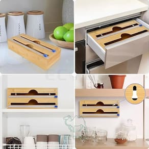 - Material resistente e elegante, feito de bambu, que combina durabilidade e um design sofisticado - Sistema de lâminas que facilita o corte do filme PVC e do papel alumínio - Instalação simples, podendo ser fixado na parede para otimizar espaço na cozinha - Compatível com diferentes tipos de rolos, tornando o dia a dia mais prático - Produto de qualidade, com acabamento refinado