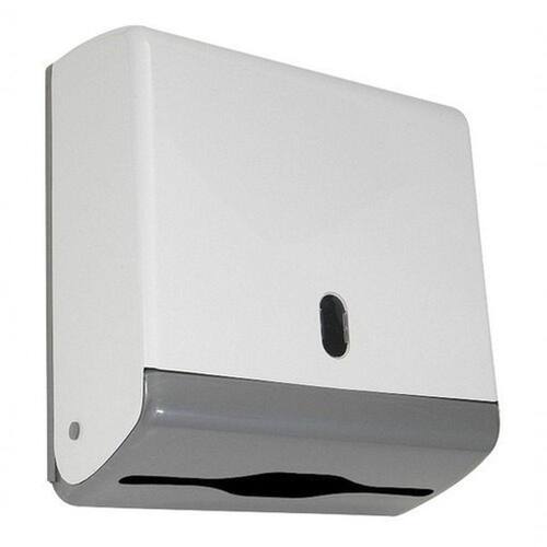 Toalheiro junior 2 ou 3 dobras para papel interfolha. Injetado em plástico ABS branco e fundo cinza com visor transparente para controle de reposição do papel_x000D_ _x000D_ O sistema de fechamento é feito através de fechadura em plástico ABS, que mantém o produto trancado, evitando, assim o furto do papel, bem como a abertura indevida da tampa do suporte._x000D_ Acompanha chave e kit para fixação na parede com buchas e parafusos,com superfície polida de fácil higienização._x000D_ _x000D_ Cores disponíveis: _x000D_ -Branco/cinza_x000D_ _x000D_ Capacidade: 600 folhas aproximadamente _x000D_ Medidas: (altura) 285mmx (largura) 255mm x (profundidade) 120mm