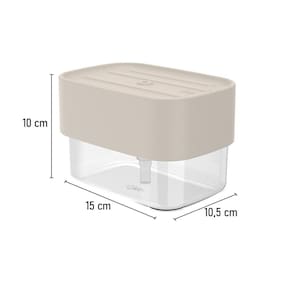 O produto evita o desperdício de detergente, pois possui dosador que funciona por pressão, e mantém a esponja seca para futuras utilizações.