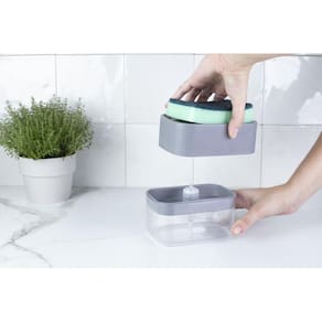 Dispenser Para Detergente 2 Em 1 Porta Esponja Trium Ou Cor: Preto O dispenser de detergente 2 em 1 é o que você precisa para facilitar e agilizar a sua rotina de limpeza na cozinha. Produzido em polipropileno resistente, o dispenser é simples de ser utilizado. Adequado para cozinhas domiciliares, restaurantes, hotéis, ou qualquer ambiente que precise de mais praticidade na hora de higienizar a cozinha. O produto evita o desperdício de detergente, pois possui dosador que funciona por pressão, e mantém a esponja seca para futuras utilizações.