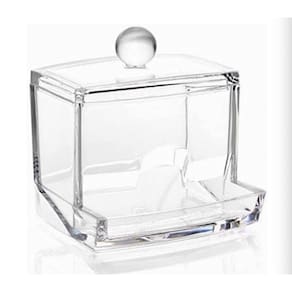 Dispenser Para Hastes de Algodão com Tampa Organize com estilo: Porta cotonete em acrílico transparente Descubra praticidade, design moderno e facilidade de uso com este porta cotonete transparente. Perfeito para manter seus itens de higiene sempre visíveis, limpos e ao alcance das mãos.