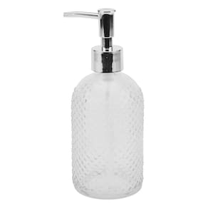 FEITO DE VIDRO: Vidro de alta qualidade com textura decorativa VÁLVULA PUMP: Em plástico cromado, prática e funcional MULTIFUNCIONAL: Ideal para sabonete líquido, detergente ou álcool gel DESIGN ELEGANTE: Combina com banheiros, lavabos e cozinhas
