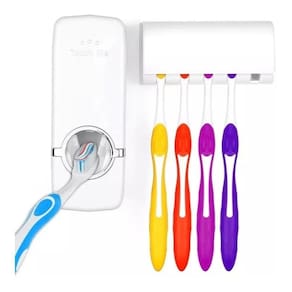 Dispenser Pasta De Dente Com Suporte De Escovas - Colar na parede, com a própria cola do produto, caso não funcione parafusar na parede. Praticidade, limpeza e organização para o seu banheiro. Nunca mais disperse pasta de dente na sua casa. Utiliza um vácuo criado na pasta para retirar cada ML da sua pasta de dente sem sofrer esforço algum. Se adapta a qualquer superfície com fita dupla face, organizando suas escovas. Acompanha um lindo suporte que organiza as escovas de dente. Para usar coloque a pasta de dente, feche a tampa. Insira sua escova e pressione levemente a escova para dentro do dispenser, fazendo assim, sair a pasta de dente colocando diretamente na sua escova. Cor Disponível: BRANCA Dimensões: Dispenser- Altura: 16 cm Largura: 6 cm Comprimento: 6 cm Porta Escova- Altura: 5,5 cm Largura: 3,5 cm Comprimento: 11 cm Ean: 7899739285115