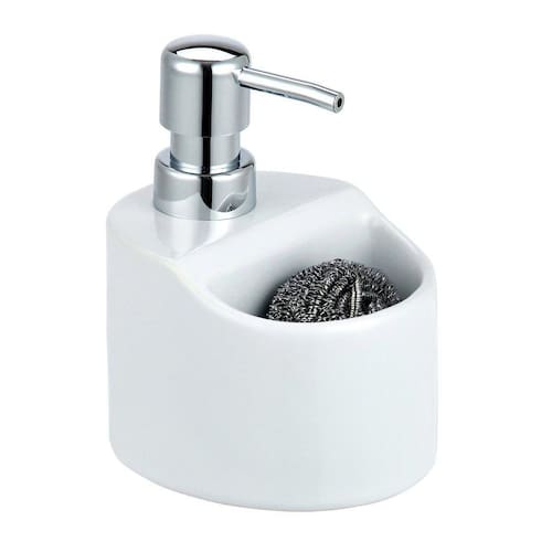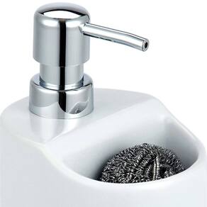 O dispenser de detergente, acompanha a bucha, é um produto para quem busca funcionalidade, beleza e organização na sua pia. Possui capacidade para 300ml de detergente e espaço para acomodar a esponja em um espaço compacto otimizando sua bancada.
