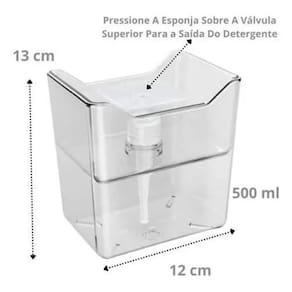 Características: Altura: 13,5 cm Largura: 12,5 cm Profundidade: 9,4 cm Capacidade: 500ml Material: Poliestireno Origem: Nacional Tipo: Porta Detergente Marca: Uz Utilidades Fabricante: UZ Utilidades