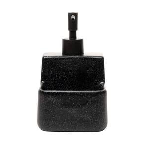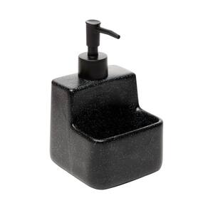 Dispenser porta sabão e suporte esponja 430ml cerâmica pia Com acabamento em granilite preto, este porta detergente líquido possui um suporte integrado para esponja, combinando funcionalidade com um visual moderno. Fabricado em cerâmica resistente, oferece durabilidade e robustez, mantendo-se bonito e funcional por muito tempo. Sua capacidade é de 430ml de detergente, proporcionando o uso prolongado, e sem a necessidade frequente de recargas. O dosador integrado permite uma aplicação precisa do detergente, enquanto o suporte para esponja mantém ambos os itens organizados e ao alcance das mãos.