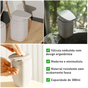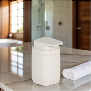 O porta sabonete líquido Ou da Linha Aura combina um design minimalista com válvula ergonômica, que pode ser acionada com o pulso para mais higiene e conforto. Com acabamento fosco e capacidade de 380ml, traz sofisticação e funcionalidade, evitando reposições constantes. Ideal para ambientes úmidos e ainda substitui embalagens descartáveis, oferecendo uma solução sustentável para o dia a dia.