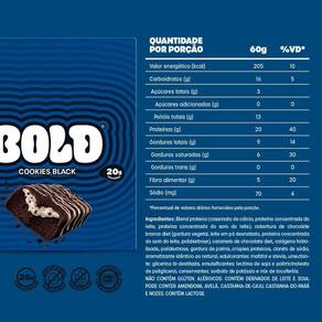 Display 12 Un Barra De Proteína 40g Bold Sabor: Cookies Black A Barra de Proteína Bold é uma excelente opção para quem busca aliar sabor e praticidade em uma alimentação saudável. Cada barra de 60g oferece aproximadamente 20g de proteínas e 5g de fibras, além de ser livre de adição de açúcares. Essa combinação torna a Bold Bar uma escolha ideal para lanches rápidos, no trabalho, na academia ou até durante viagens, sem comprometer a qualidade nutricional.