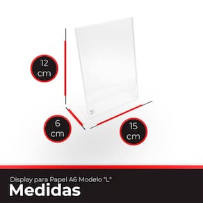 FICHA TÉCNICA Modelo: Display para Papel A6 Modelo "L" Posição Retrato Material: Acrílico Cristal 2mm Dimensões: Largura: 12cm, Altura: 15cm Peso: 0,145Kg