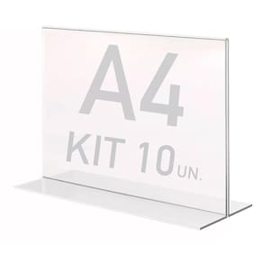 Kit 10 Displays expositor T A4 Horizontal transparente porta papel, podendo usar frente e verso (folha A4). .
