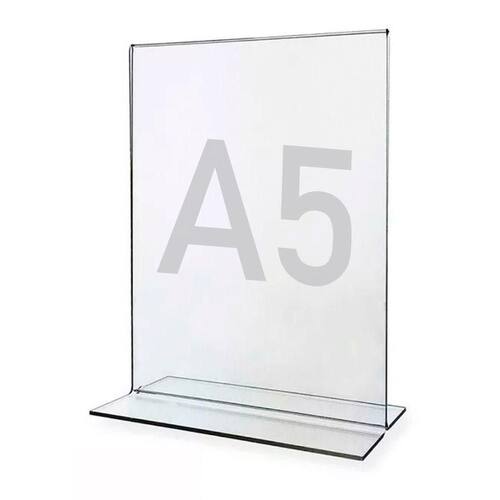 Display expositor T A5 transparente porta papel, podendo usar frente e verso (folha A5). .
