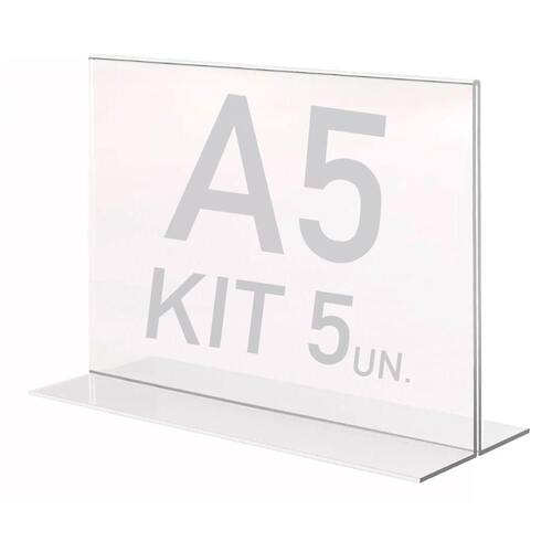 Kit 5 Displays expositor T A5 Horizontal transparente porta papel, podendo usar frente e verso (folha A5). .