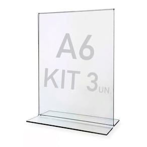 Kit 3 Displays expositor T A6 transparente porta papel, podendo usar frente e verso (folha A6). .
