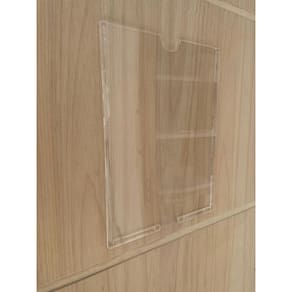 Display Porta Folha A5 Horizontal em Acrílico Cristal com fita dupla face.