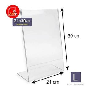Display porta folha sulfite a4 acrílico balcão mesa cardápio Descrição Suporte de papel para porta folha e folheto a4 em ps 100% virgem no formato l , são produtos de alta resistência, durabilidade e transparência de primeira qualidade não é reciclado ou chinês . Fabricados em máquinas tecnológicas e computadorizadas, promovendo cortes perfeitos, utilizando de chapas de ps virgens . Onde utilizar seu display O display é a forma mais simples, fácil e eficiente de divulgação para diversos tipos de exposição de anúncios, comunicados, certificados, alvarás, licenças, suportes para notificações, ofertas, porta cartazes, porta folders, porta cardápios, mesas, estantes, vitrines, flayers, sinalizações informativas, sinalização empresarial, podem ser utilizados em residências e empresas, condomínios residenciais, restaurantes, hospitais, repartições públicas, feiras e qualquer tipo de comunicação entre você e seus clientes ou funcionários. Especificações Modelo: display em ps formato l Modelo: a4 Quantidade: 1 peça Tamanho Altura: 30cm Largura: 21 cm Base: 21 x 9 centímetros Material: ps Ps transparente cristal de 1.5 milímetros de espessura. Benefícios - peça fabricada com corte a laser - não amarela com o tempo - excelência resistência e durabilidade - material resistente e forte Cada display acompanha a película de plástico anti-risco na parte da frente para que não risquem um no outro durante o transporte, após receber a mercadoria o comprador deve retirar a película de plástico da frente de cada display. Para retirar a película é só dar uma forçada com a unha no cantinho do display e retirar a película. Você já pode usar. Cuidados com os produtosA limpeza deve ser feita sempre com um pano macio ou flanela a fim prolongar a vida útil do material. Não usar esponjas, materiais de fricção, não utilize álcool puro ou solventes. Agradecemos pela visita e aguardamos a sua compra.