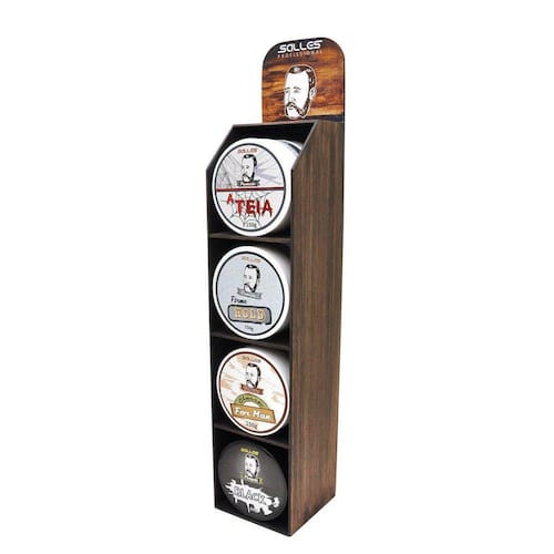 Display Suporte Expositor Para Pomada SallesDisplay mostruário para pomadas Salles, rustico e moderno.Peça única para divulgar sua linha de produtos e item decorativo.Produto exclusivo Salles.Capacidade para até 8 Pomadas Salles Profissional Foto ilustrativa, display não acompanha pomadasCor: Madeira Medidas: Altura 41cm Largura e Comprimento 10CM
