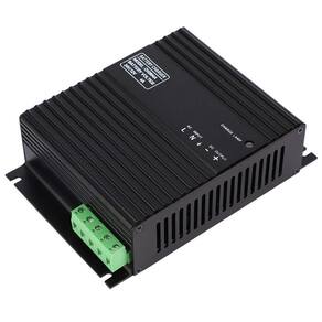 Característica: O invólucro é feito de alumínio e o produto tem bom desempenho de dissipação de calor e resistência à corrosão. Todos os componentes eletrônicos são selecionados de acordo com o nível militar, e toda a placa de circuito é selada com resina epóxi, o que torna o produto mais resistente à umidade, corrosão e vibração. Aplicável ao carregamento de baterias de 12 V e 24 V de vários modelos de marcas, selecione o modo de carregamento de bateria de 12 V ou 24 V por jumper. A tensão de trabalho AC80 ~ 275V, frequência de trabalho 20 ~ 600Hz, pode garantir que o motor ainda possa ser carregado em baixa velocidade (marcha lenta). A energia elétrica do grupo gerador a diesel pode ser carregada diretamente para substituir o carregador da fuselagem. Pode ser utilizado em um ambiente úmido com temperatura de -40° C ~ +65° C e umidade relativa de 98% RH sem condensação. Permite que o motor seja ligado enquanto a concessionária está carregando a bateria. Aplicável a baterias de -ácido, especialmente adequado para carregar baterias sólidas de alta temperatura totalmente seladas. Pode ser de parada automática para corrente constante, tensão constante e turbulência da bateria. Função de partida suave: como o sistema adota o design de partida suave, ele não gerará uma grande faísca devido à oscilação de energia. Além disso, quando o carregador é conectado on-line, ele não interfere no sistema da fonte de alimentação logo após a alimentação ser ligada. Especificação: Carga rápida de corrente constante: quando a tensão da bateria carregada é inferior ao valor definido (bateria de 12V <12V, bateria de 24V <24V Quando o carregador está carregando a bateria na corrente máxima constante. Limite de corrente